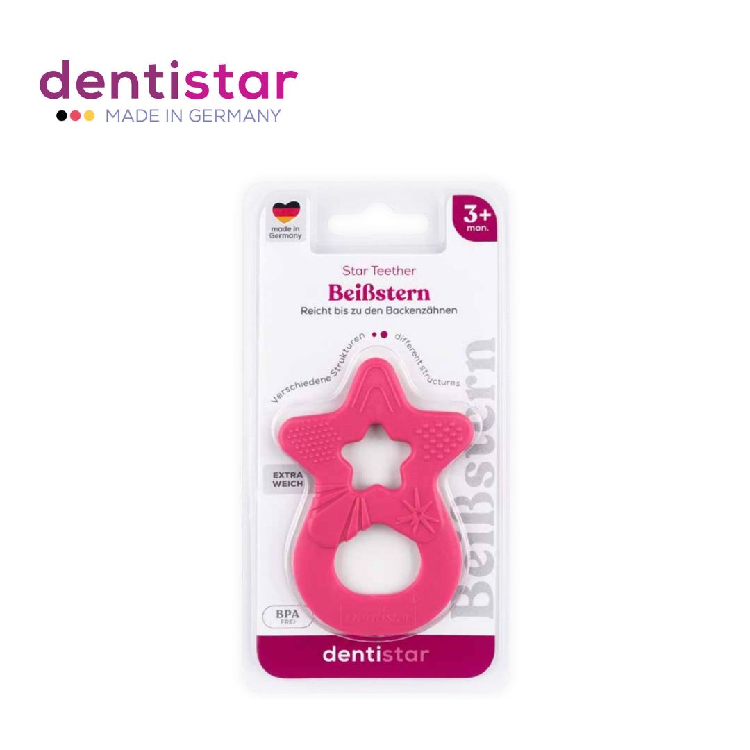 The Dentistar Teether gently massages the gum and soothes pain. Different surface structures ensure variety.